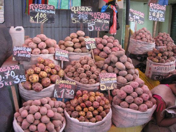 Aber den Mercado San Camillo, einen der bekanntesten Märkte der Stadt nahe dem Zentrum, besuchen wir. Das Dach des Marktes wurde vom Erbauer des Eiffelturms konstruiert. Hier findet manalles, was man zum täglichen Leben an Nahrungsmitteln und anderen Waren benötigt und noch viel mehr. Wir sind von dem Angebot überrascht, es gibt in Peru allein über 1.000 Sorten Kartoffeln in allen Farben, Formen und Größen. Blumen, Brot, Fleisch (Schweinefleisch ist am teuersten) und viele andere Artikel finden hier ihre Käufer.