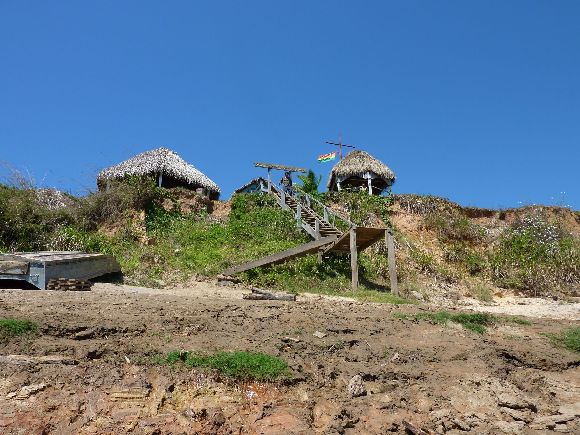 David, der uns den Raum überlassen hat, spendiert eine eiskalte Kokosnuss. Auch will er uns einen Block gepressten Kakaos schenken, der Goldwaschanlage in der Kühltruhe lagert, aber was sollen wir mit dem anfangen? Außerdem sieht dieser Block nicht besonders appetittlich aus. Ist schon gut, dass wir in der Kühltruhe unser Bier kühlen dürfen. Marion hat heute die Bierausgabe, und sie schüttelt sich förmlich, wenn sie die Kühltruhe aufmacht. Fleisch ohne Verpackung, ich traue mich gar nicht in die Truhe zu schauen. Zumal die Truhe ja nur kühlt, wenn der Generator läuft, und das ist nur ein paar Stunden am Abend.