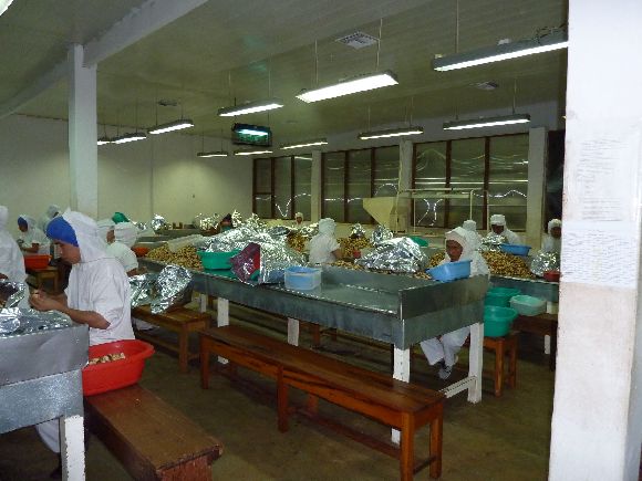 Um die eigentliche Weiterverarbeitung der Paranüsse zu sehen, müssen wir Schutzkleidung anziehen und unsere Hände desinfizieren. Fotografieren dürfen wir aber. Es gibt etliche Qualitätskriterien. Unter UV-Licht wird kontrolliert, ob die Nüsse evtl. durch Pilze befallen sind. Und immer wieder wird aussortiert. Ich weiß nur, ich werde jede Paranuss jetzt ganz bewusst essen und nie mehr denken, wie teuer doch die Nüsse sind. Es war auf jeden Fall eine interessante und lohnenswerte Besichtigung.
