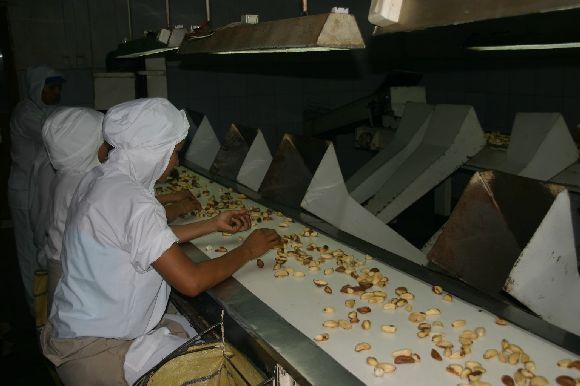 alles wieder Handarbeit. Nuss für Nuss. Das muss man gesehen haben.