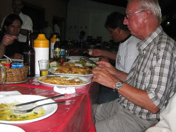 angefressen. Wir haben mit dem Essen Glück, der Fisch den wir