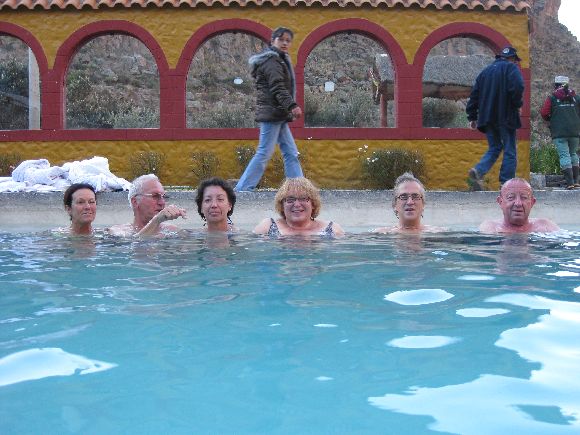 Mit dem Bus fahren wir zu den Thermen. Ich bin überrascht wie großzügig diese angelegt sind. Und obwohl es schon später Nachmittag ist, herrscht reger Betrieb. Wir suchen uns ein Becken, das etwas leerer ist und dann nichts wie rein. Herrlich. Wir aalen uns im warmen Wasser. Alle genießen dieses Bad mit Blick auf die schöne Landschaft.